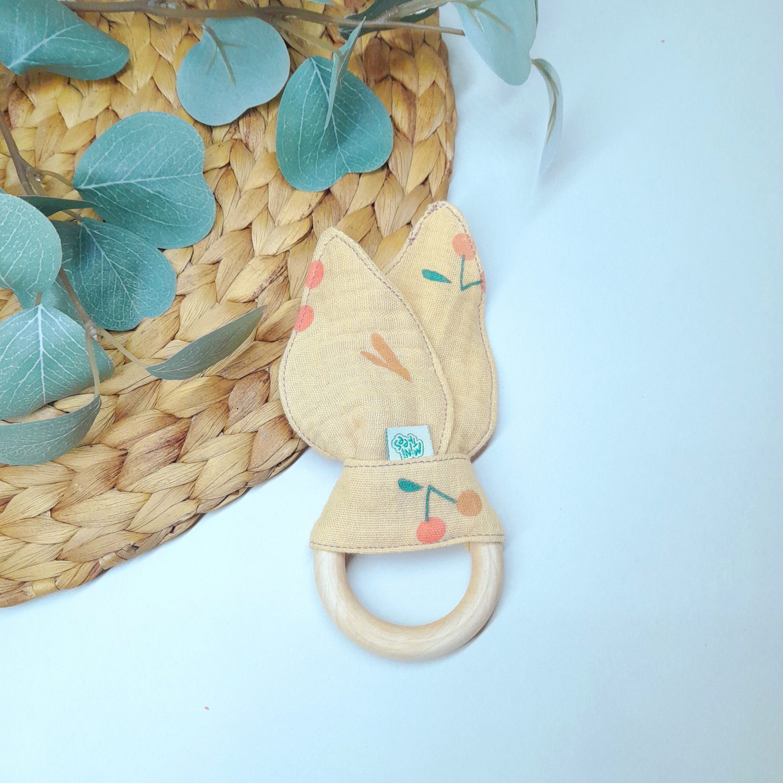 Teething ring with muslin cloth. Natural relief for irritated gums in babies
