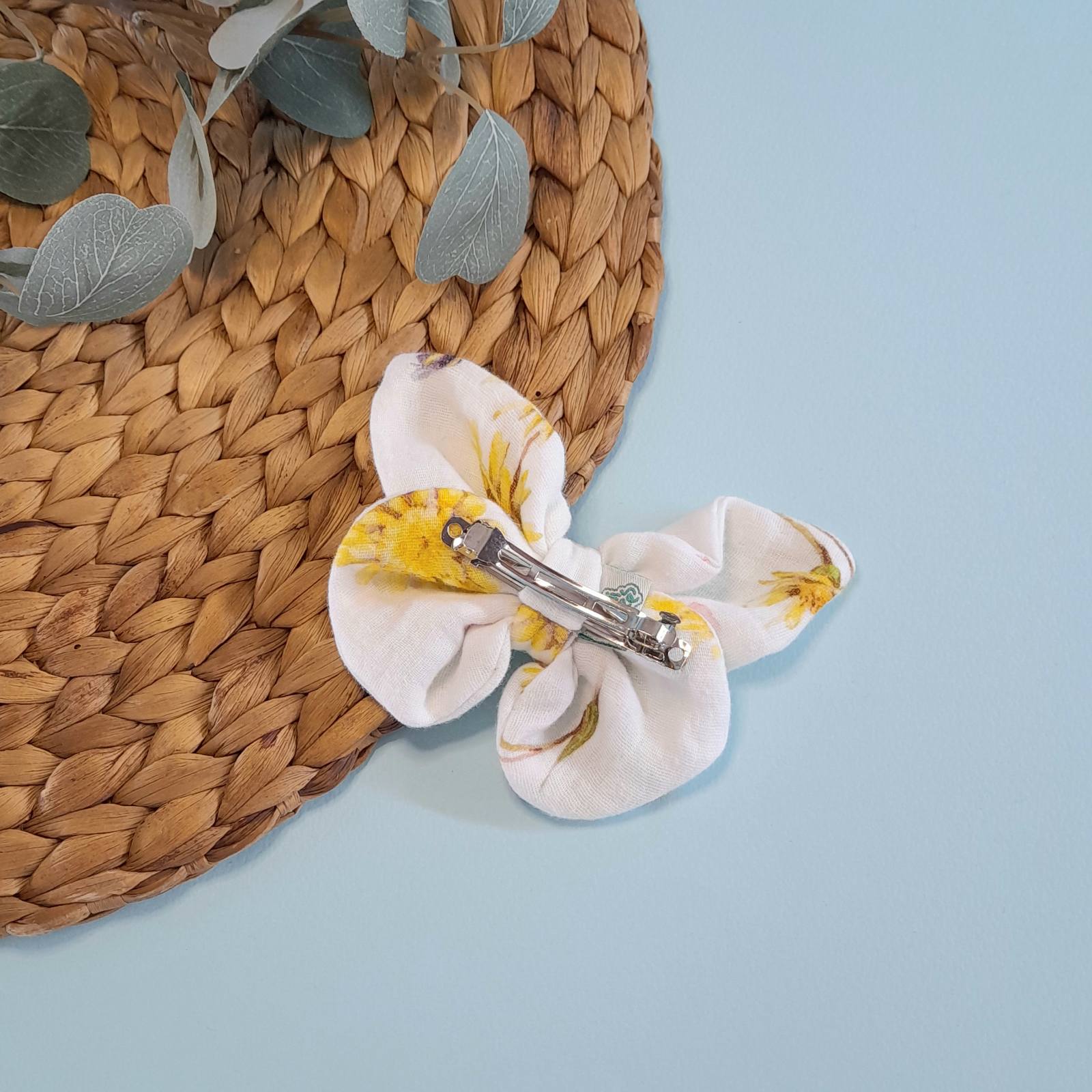 Το κοκαλάκι σε σχήμα πεταλούδας “Sunflowers” είναι κατασκευασμένο από 100% βαμβακερή μουσελίνα, με πιστοποίηση Oeko-Tex Standard 100.