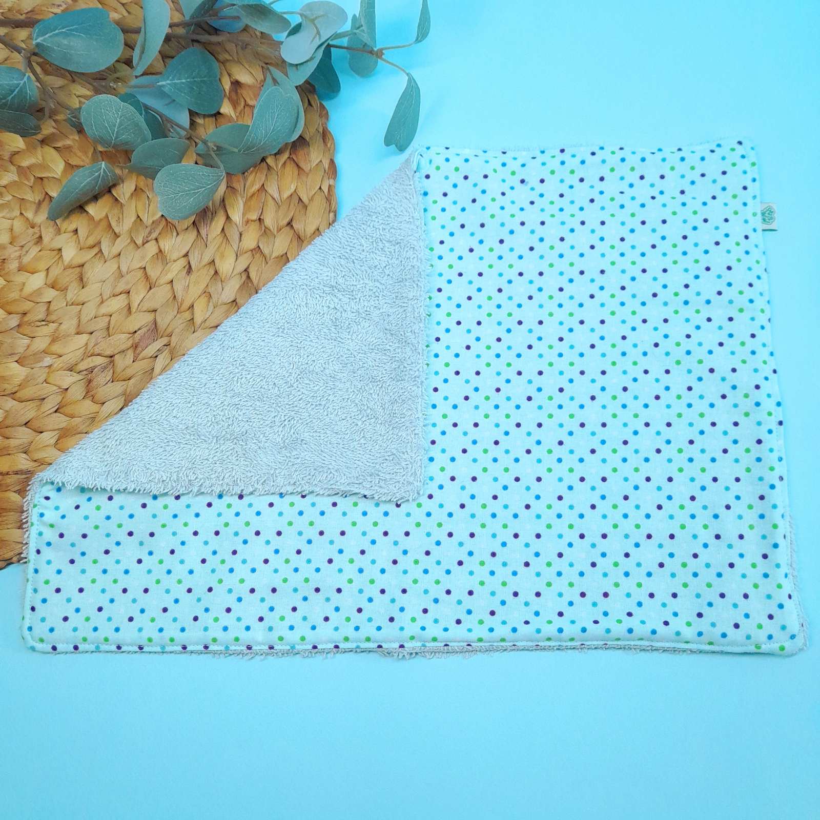 The “Floral baby blue” placemat is a multifunctional accessory for children and babies, ideal for school, walks or home. It is made of two fabrics: