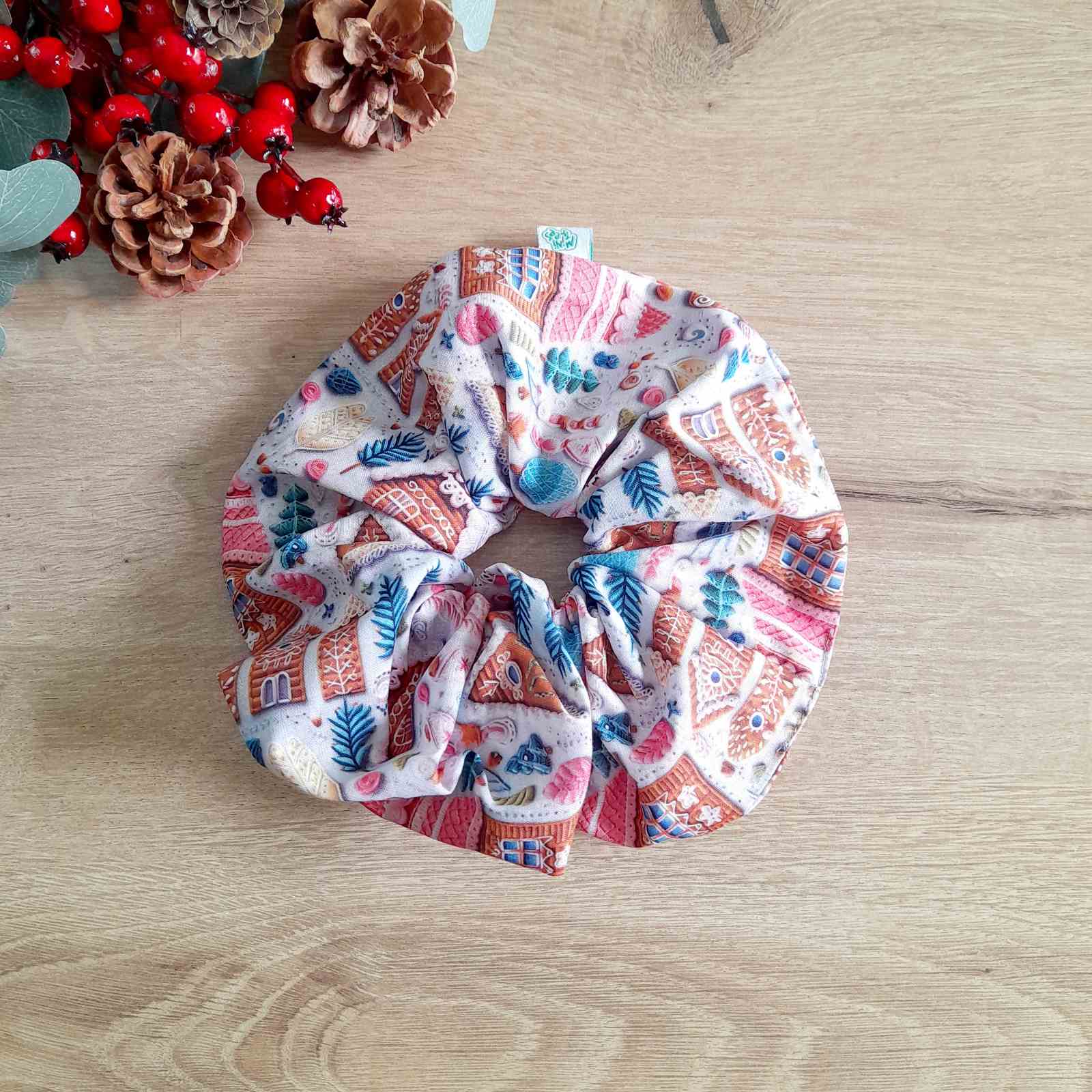Το χριστουγεννιάτικο, maxi scrunchie “Sugar houses” είναι φτιαγμένο από μαλακό ύφασμα υψηλής ποιότητας 100% βαμβακερό.