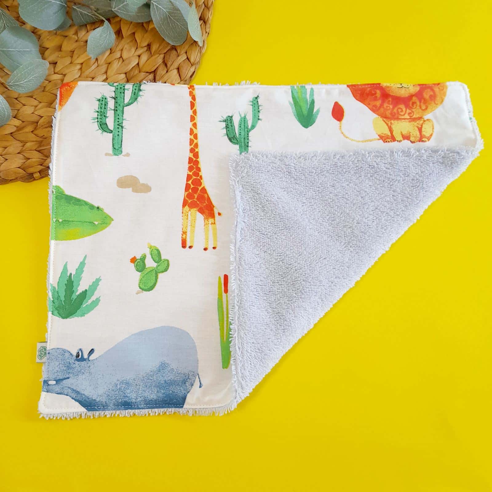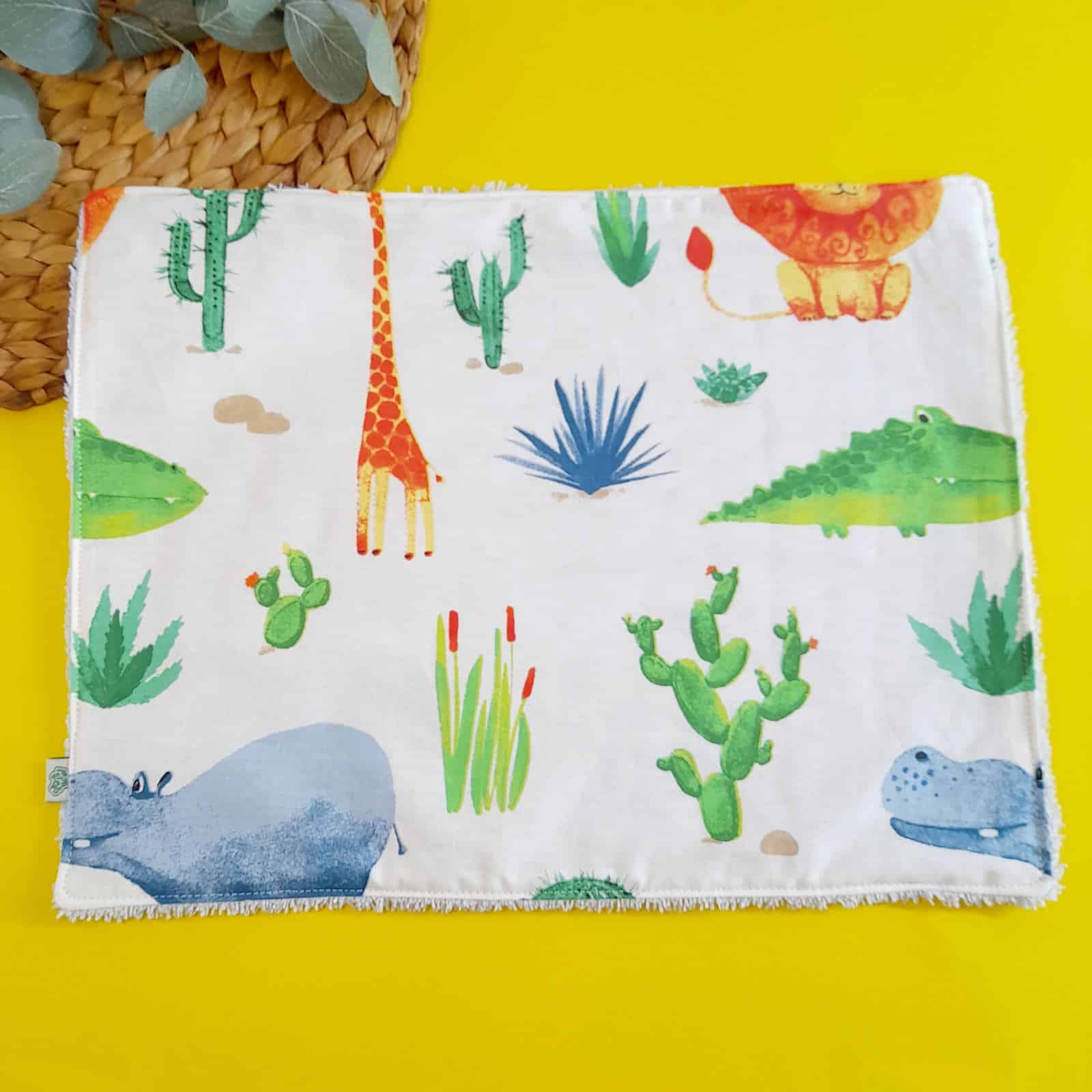 Η πετσετούλα-σουπλά “Jungle baby blue” είναι ένα πολυλειτουργικό αξεσουάρ για παιδιά και βρέφη, ιδανικό για το σχολείο, τις βόλτες ή το σπίτι. Είναι κατασκευασμένη από δύο υφάσματα: