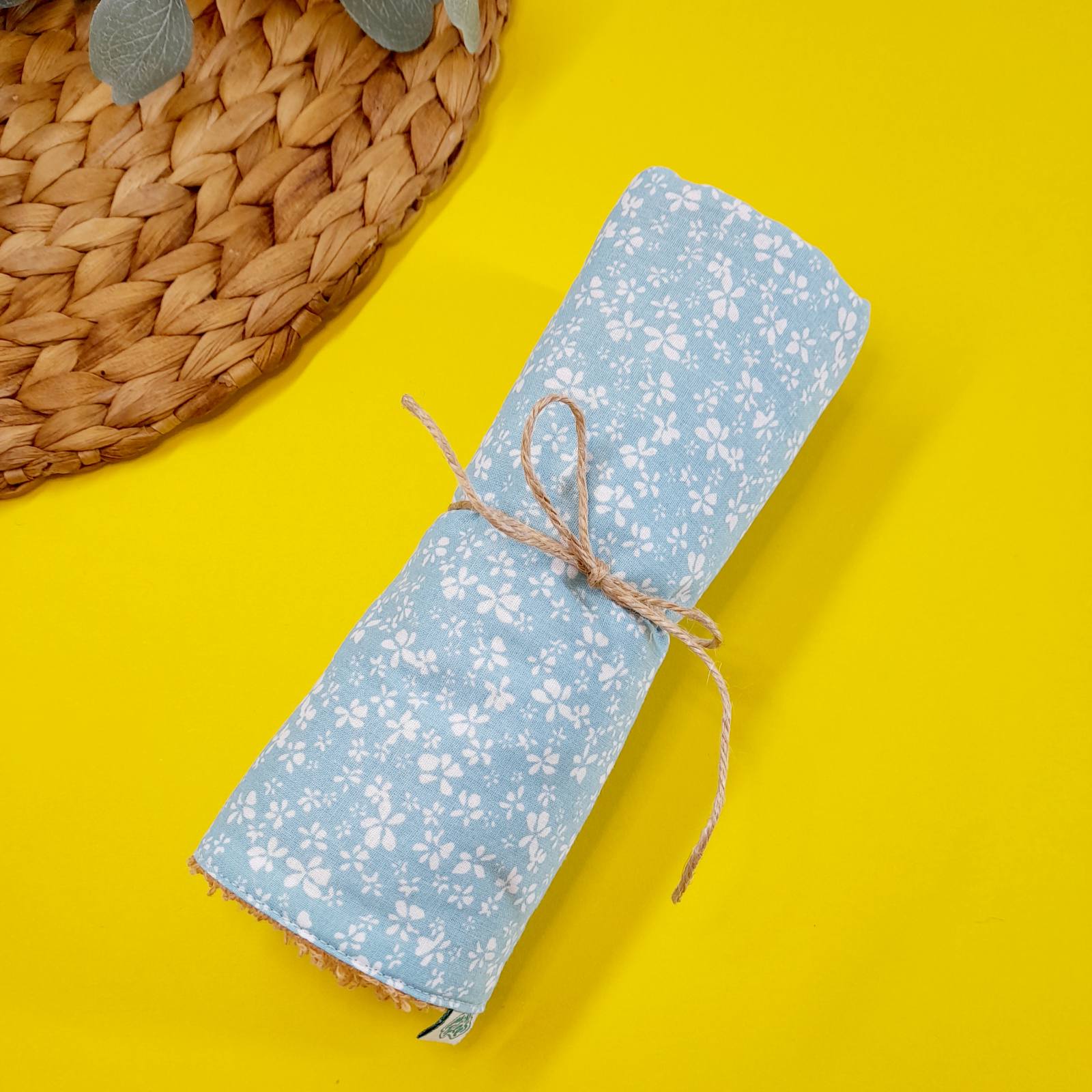 Η πετσετούλα-σουπλά “White flowers cookie” είναι ένα πολυλειτουργικό αξεσουάρ για παιδιά και βρέφη, ιδανικό για το σχολείο, τις βόλτες ή το σπίτι. Είναι κατασκευασμένη από δύο υφάσματα: