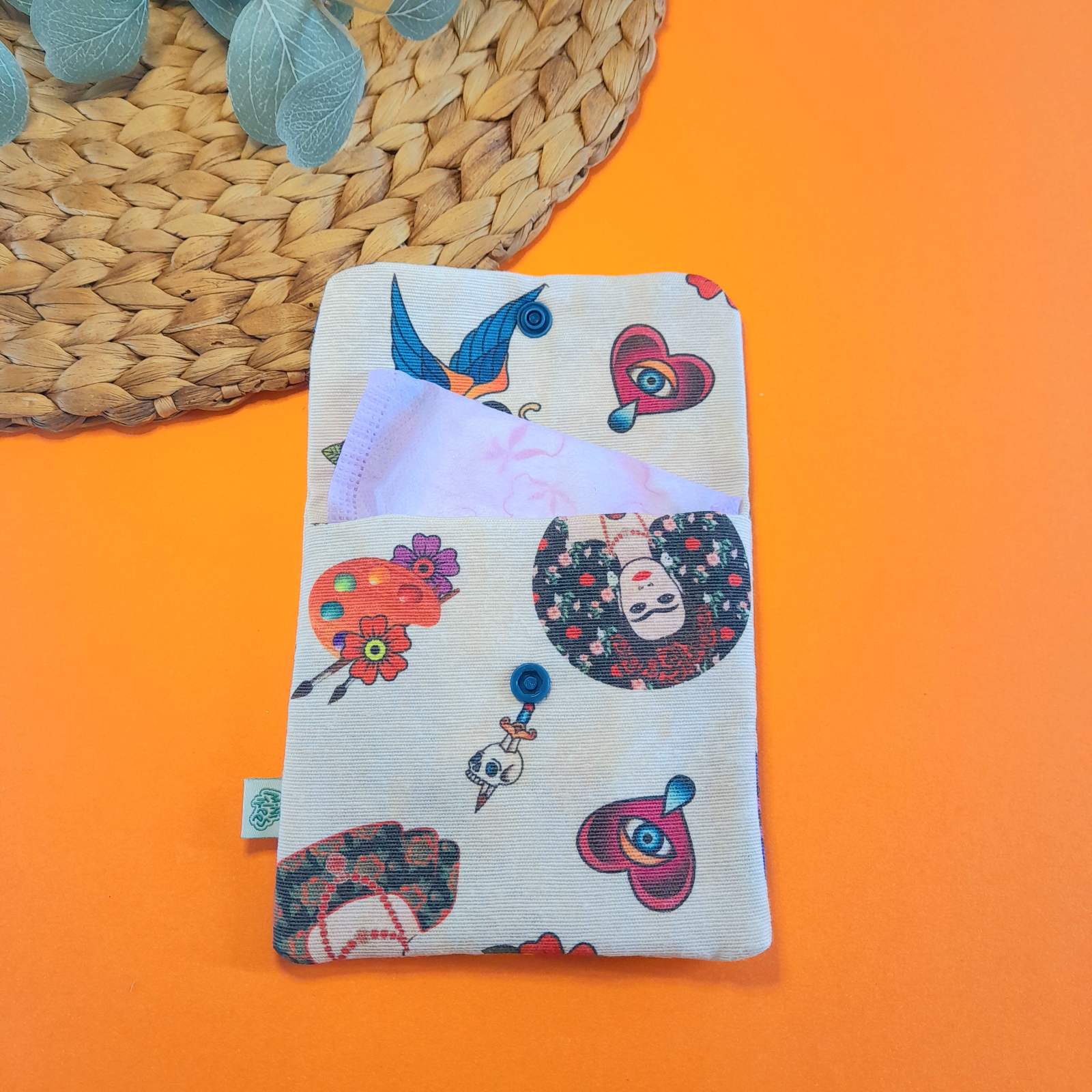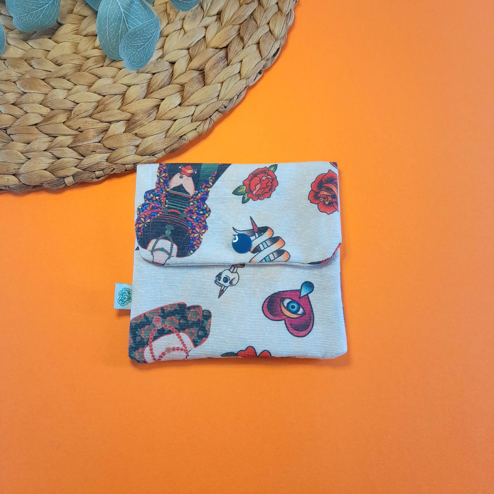 Το πορτοφολάκι μιας θέσης “Frida Kahlo” είναι πολυλειτουργικό και δεν πρέπει να λείπει από καμία τσάντα. Σχεδιασμένο για να χωράει τα απαραίτητα, αποτελεί ιδανική επιλογή για την αποθήκευση κοσμημάτων, κερμάτων, χαρτονομισμάτων, αλλά και προϊόντων γυναικείας υγιεινής (πχ. σερβιέτες).